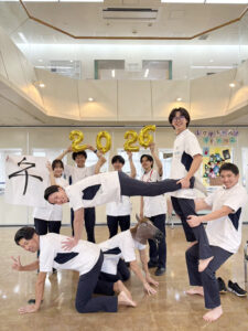 今年は午年ということで、記念リハビリテーション部の年男、年女と愉快な仲間たちで新年の挨拶を申し上げます。馬のように躍動感のある写真を目指し撮影させて頂きました。